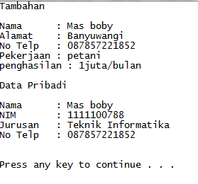 cout<<"Data Pribadi"<<endl;