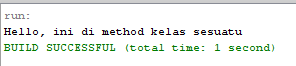 System.out.println("Hello, ini di method kelas sesuatu");